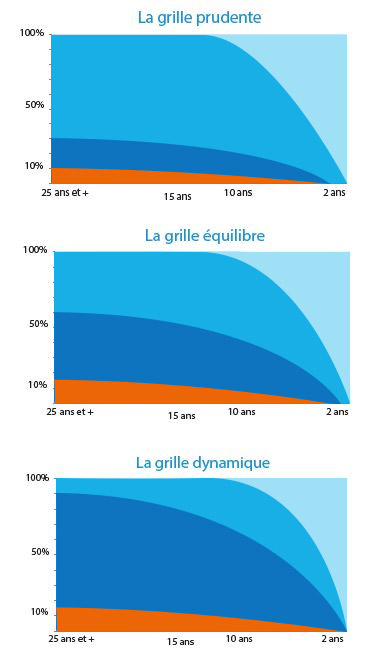 - 3 grilles peuvent être proposées : "prudente", "équilibre" et "dynamique". La grille "équilibre" est la grille par défaut,